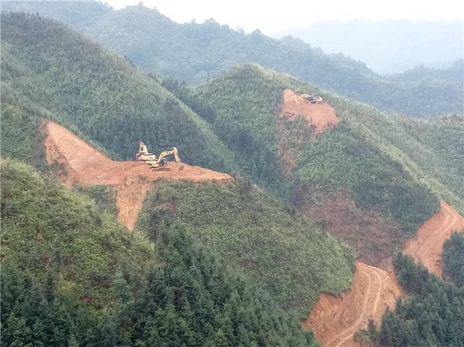 站在项目的起点桩号K28+714的山顶,我们一览众山的青山绿水,看着这连绵不断、起伏陡峭的山峦,不免敬畏这大自然的鬼斧神工……但当心中勾勒出在这群山环绕盘旋的公路宛如一条巨龙藏身于此的画面时,不禁热血沸腾,下定决心要团结一致,克服一切困难,建造出美丽气势的蒙金路。