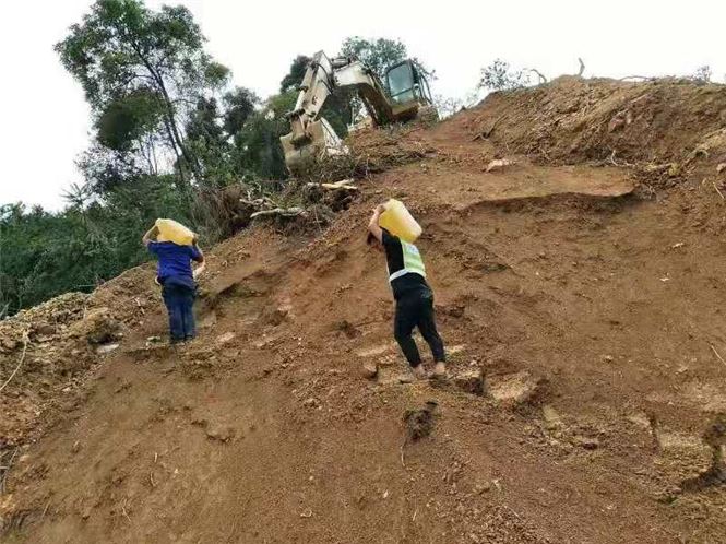 这一切喜悦都是我们施工现场管理人员、测量人员、机手和工人付出许多汗水收获的。他们年轻有朝气、团结一致、服从安排、任劳任怨,为项目施工进度的推进起到了不可替代的作用。项目现场的同事们每一天都在现场施工管理员谭忠佳的军队号角铃声中准时起床,简单的洗漱和早餐后,一天忙碌的工作就开始了。即使是中午也常常忙得忘了吃饭时间,到了晚上加班加点也已经是常态。有一段施工点是在山谷里面,施工便道只可以机械通行,车辆无法进入,施工人员进出都是靠两条腿,一走就是半个多小时的路程,更艰苦的是要爬一段两三百米高而且接近70度的陡坡,更累的是我们的机手,保养机子要抗一桶五十斤重的机油上去,困难可想而知。而我们的现场管理人员谭忠佳一天更是两趟来回,上班指导开挖,中午送饭送水。看着他每天汗流狭背,常常问他累吗,他总是笑笑说:“只要不下雨,能按施工节点完成计划任务再累也不觉得累,看着这一天天变化心里儿高兴”。是的,即使天空都布满了星云,我们也只是抬头望一望,仿佛是照亮我们心中的信念,继续我们前进的路。