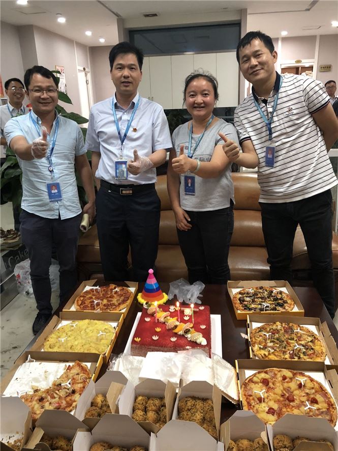5月10日中午,北投交通养护科技集团在结束为期一天半的全体职工大会后,为近期生日的小伙伴们举行集体生日会。综合部精心准备了生日蛋糕、比萨、饮料及点心,公司董事长吴小流宣读“寿星”员工名单,大家为“寿星”员工寄语祝福、合影、唱生日歌,现场气氛温馨感人,当宣宇同事吹灭蜡烛的那一刻激动地说:“感谢公司关心、感谢大家祝福,真的太谢谢你们了!”集体生日会是北投交通养护科技集团工会小组于去年10月开始启动的为过生日的职工们举行的集体活动,得到了广大员工发自内心对公司的感激,使员工感受到同事如家人般和谐、有爱,从而更团结、更自觉的投入集体工作生活中。
