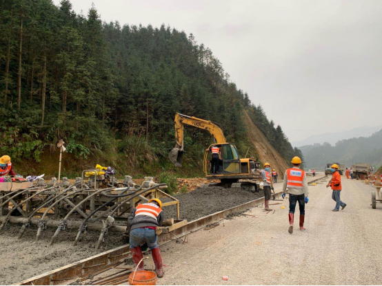 蒙金2标位于平南县马练乡境内,路线全长20.499公里。项目复工复产以来,坚持防疫、生产两手抓、两促进,各项工作有序推进。截止目前,路基、桥涵工程已基本完成,水泥混凝土路面完成9公里,计划4月底完成路基工程,5月底完成桥涵、路面工程。