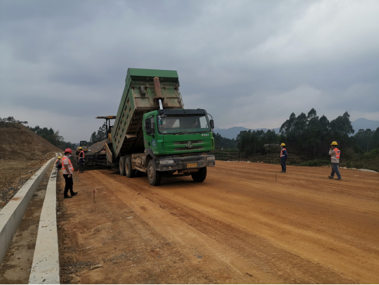 蒙山连线项目位于贺巴高速昭蒙段蒙山县境内,路线总长5.2公里,目前完成A线2.5公里碎石垫层施工,完成L线2公里路基施工,计划4月底完成所有路基施工,5月底完成路面基层施工,6月底完成沥青路面施工。
