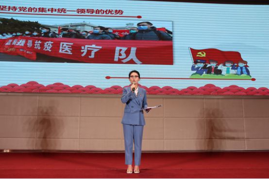 我集团公司主讲人魏妮娜同志以“疫情防控彰显中国特色社会主义制度显著优势”为题,结合疫情防控期间全党全军全国各族人民以坚定的信心、顽强的意志、果断的措施,齐心协力坚决打赢疫情防控的人民战争、总体战、阻击战的感人事迹,讲述北投养护在疫情防控行动中的先进事迹,对习近平总书记在新冠肺炎疫情防控期间所作的重要讲话精神进行宣讲:生命重于泰山,疫情就是命令,防控就是责任,此次疫情阻击战再次印证了中国特色社会主义制度的无比优越性。一是坚持党的集中统一领导的优势;二是坚持以人民为中心的优势;三是坚持集中力量办大事的优势。她的宣讲声情并茂,收放自如,在激烈的角逐中,最终以三等奖的好成绩脱颖而出。