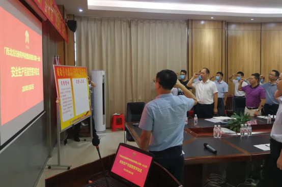 会上,阮志新还与参会人员一同参加了“安全生产月”宣誓仪式,并与一分公司青年突击队代表进行合影。一分公司副总经理陈庆林、各项目负责人及安全主管等参加会议。(潘洁/文 一分公司/图)