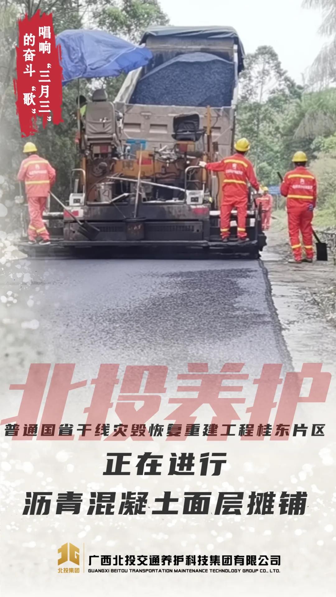 “三月三”假期,八桂大地处处是宛转悠扬、洋洋盈耳的歌声,在北投养护科技集团遍布全区的项目作业现场,坚守岗位的北投养护科技集团“奋斗者”们,心系人民群众美好出行,践行“我为群众办实事”,以汗水为奏,双手为谱,用责任、敬业奏响了节日里最美乐章、最强音符,唱出了“节日我在岗”的奋斗之“歌”、攻坚之“曲”。